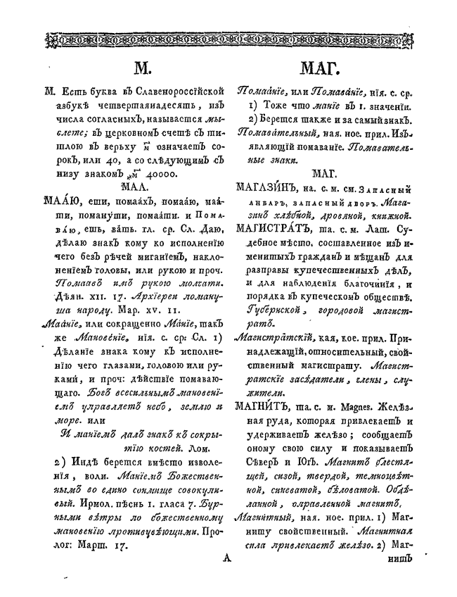 Знаменитый словарь Российской Академии, первый толковый словарь русского языка, содержащий 43 357 слов в 6 частях. Работа над словарём началась в 1783 году, и заняла 11 лет.