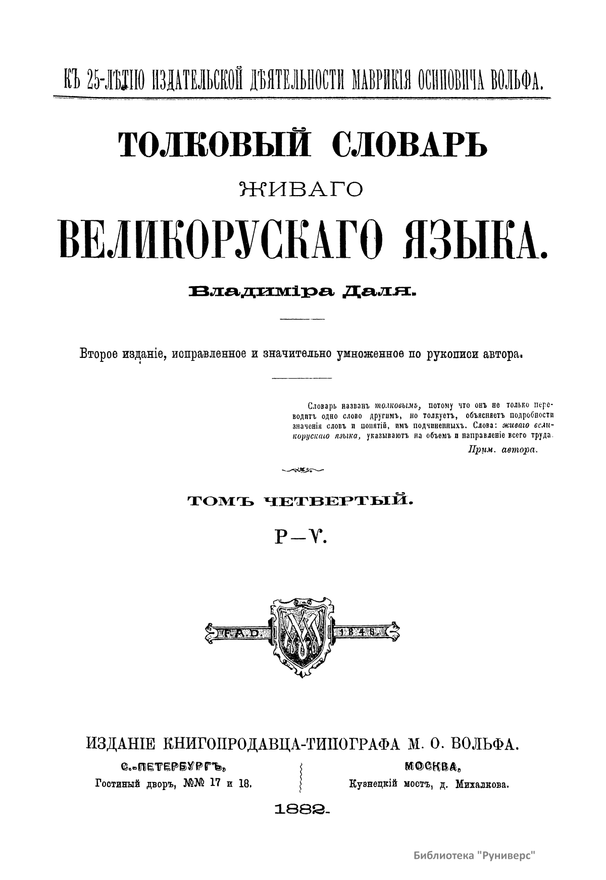 Толковый словарь живаго великорускаго языка Владимiра Даля. Том четвертый. Р — Ѵ