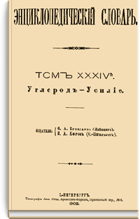 Самая крупная дореволюционная русская универсальная энциклопедия, выпущенная акционерным издательским обществом «Ф. А. Брокгауз — И. А. Ефрон». Состоит из 86 томов (82 основных и 4 дополнительных), выходивших в течение 1890-1907 годов. Первые 8 томов (до буквы «В») вышли под общей редакцией профессора И. Е. Андреевского и в основном содержали переводы на русский язык статей знаменитой немецкой энциклопедии Брокгауза «Konversations Lexikon».