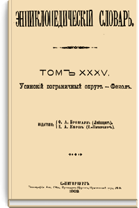 Самая крупная дореволюционная русская универсальная энциклопедия, выпущенная акционерным издательским обществом «Ф. А. Брокгауз — И. А. Ефрон». Состоит из 86 томов (82 основных и 4 дополнительных), выходивших в течение 1890-1907 годов. Первые 8 томов (до буквы «В») вышли под общей редакцией профессора И. Е. Андреевского и в основном содержали переводы на русский язык статей знаменитой немецкой энциклопедии Брокгауза «Konversations Lexikon».