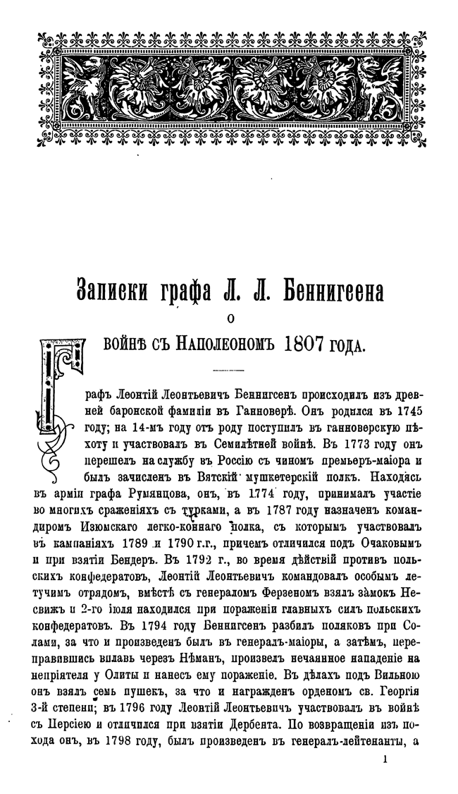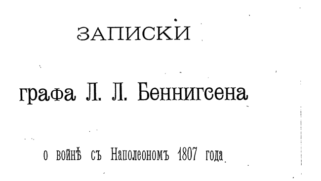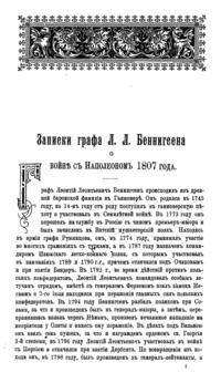 Записки графа Л.Л. Беннигсена о войне с Наполеоном 1807 года