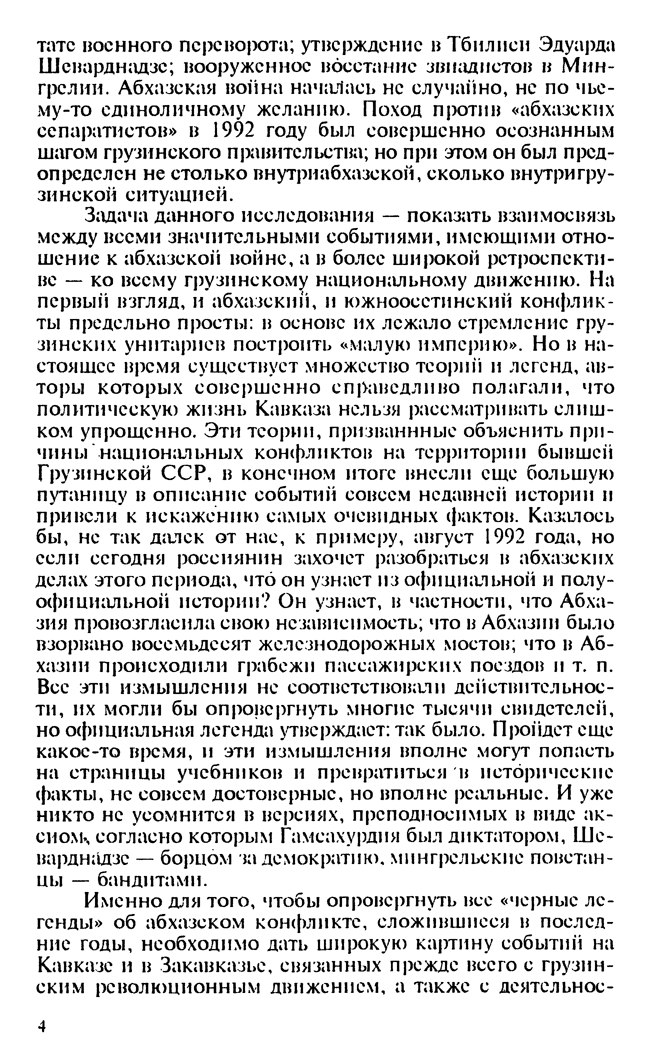 Книга «Бросок малой империи» посвящена истории и предыстории грузино-абхазской войны 1992-1993 годов. Автор ставил перед собой задачу показать взаимосвязь между всеми значительными событиями, имеющими отношение к этой войне, а в более широкой ретроспективе – ко всему грузинскому национальному движению и его стремлению построить «малую империю». Для того, чтобы опровергнуть все возникшие легенды об абхазском конфликте, необходимо дать широкую картину событий на Кавказе и в Закавказье, связанных прежде всего с грузинским революционным движением, а также с деятельностью Конфедерации народов Кавказа. Не разобравшись во внутриполитической ситуации в Грузии в 19891993 годов, невозможно составить четкое представление о войнах в Южной Осетии, Абхазии и Мингрелии. Именно поэтому в этой книге дано краткое описание грузино-осетинского конфликта, более подробно рассматриваются мингрельские войны и звиадистские восстания.