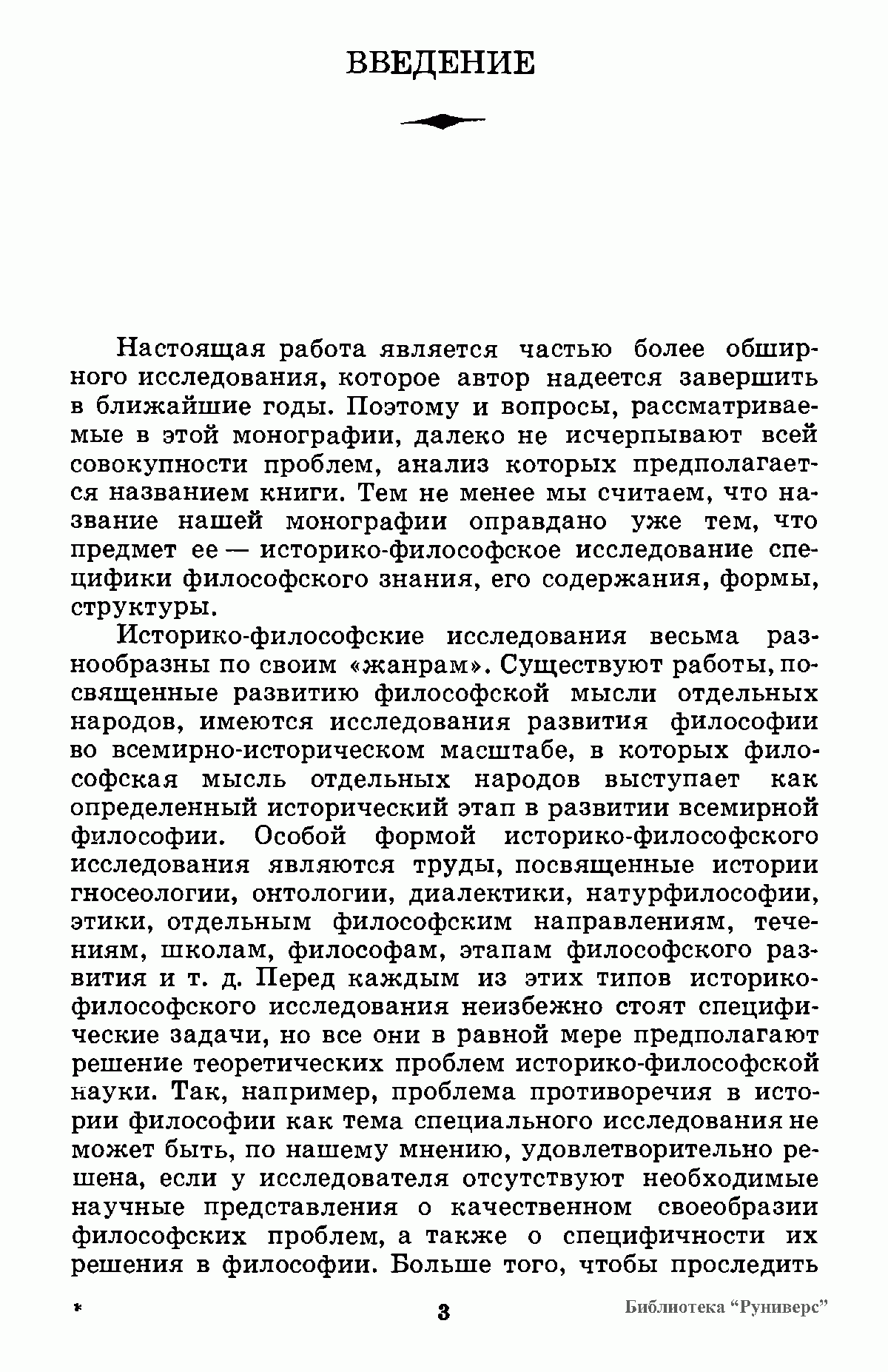 На основе сравнительного анализа философских учений прошлого и настоящего автор исследует специфику философской формы познания, структуру философского знания, исторически преходящий характер дивергенции философских учений, изменение места философии в системе научных знаний, развитие предмета философии, превращение философии в научное мировоззрение, взаимоотношение философии и частных наук, природу философского спора, идеологические функции философии.