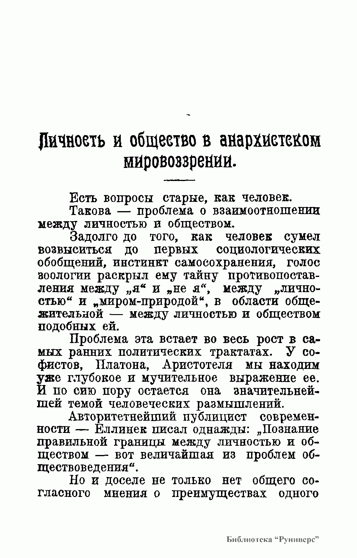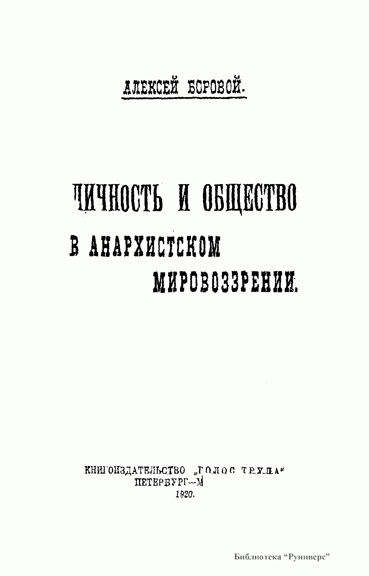 В книге российского философа и историка А.А.Борового (1875-1935) дается всесторонний обзор анархизма в контексте социальных проблем, в аспекте взаимоотношений личночти и общества. Постановку и решение широкого круга проблем (свобода, равенство, смысл и цель жизни, политика) автор дает в историко-философском экскурсе, делая обстоятельный разбор как западных мыслителей, так и отечественных властителей дум (