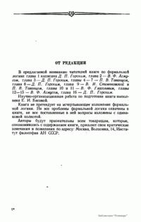 Книга не претендует на исчерпывающее изложение формальной логики. Не все проблемы формальной логики охвачены в книге, не все поставленные в ней вопросы изложены с одинаковой полнотой.