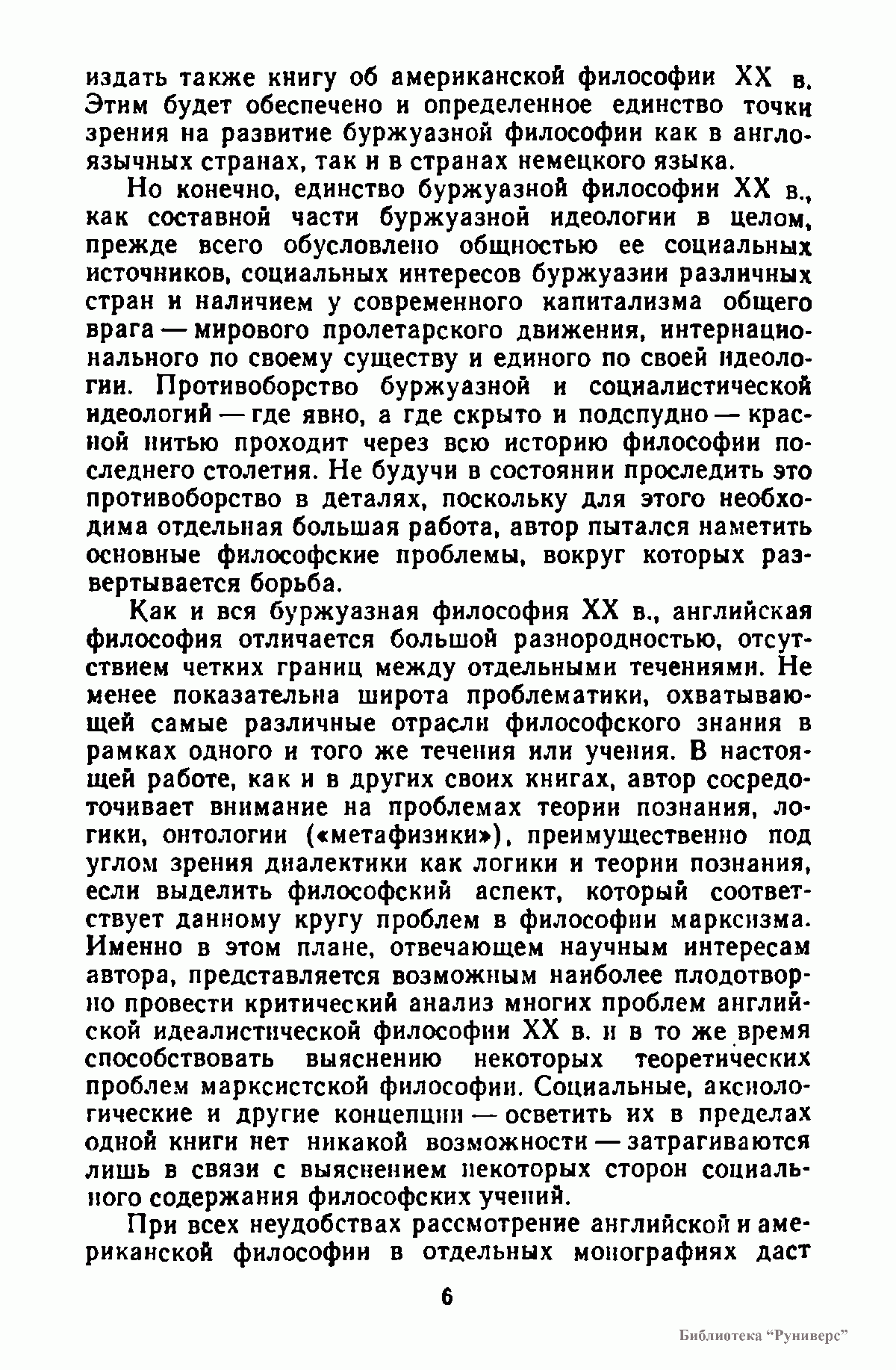 Настоящая книга представляет собой изложенне и критический анализ с позиции "марксистко-ленинской методологии" (единственно приемлемой в СССР) основных направлений британской буржуазной философии с конца XIX в. до второй половины XX в. Основное вннманне в работе известного историка философии уделяется взглядам английских буржуазных философов иа проблемы теории пoзнання и онтологии. Богатая фактическим материалом и интересными наблюдениями над эволюцией буржуазного мировоззрения эа последнне сто лет.