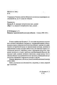 В книге профессора Куправа А.Э. на основе письменных источников и полевых материалов освещаются малоразарботанные в абхазоведении вопросы традиционной культуры абхазов: влияние географической и исторической среды на традиционную культуру; духовные и нравственные основы апсуара ("абхазство"), её этикетные нормы и эстетические ценности; народные сходы и ораторское искусство; отражение духовности в языке; проблемы преобразований абхазских фамильных имен, влияние миграции населения, уклада жизни, быта и обычаев абхазов на антропоминические процессы; взаимодействие религиозных верований и народной культуры и другие. Издание приурочено к 60-летию педагогической деятельности автора (1948-2008). Работа рассчитана на специалистов, студентов, а также широкий круг читателей.