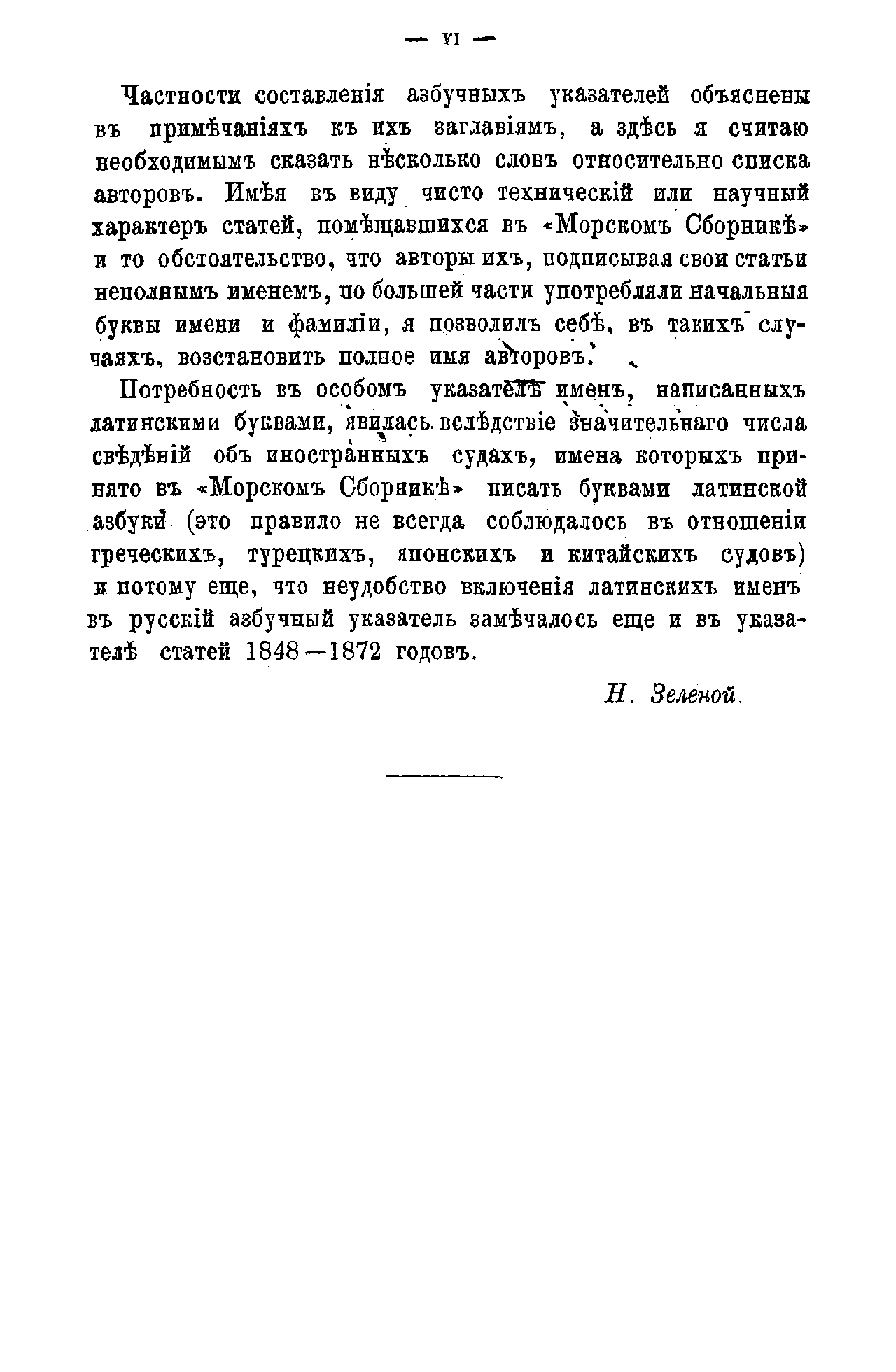 Продолжение (вторая часть) систематического указателя статей «Морского сборника» выполнил известный историк флота Н.И. Зеленой, который по поручению председателя Ученого отделения Морского технического комитета расширил это издание до 1882 г., полностью сохранив его структуру.