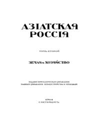Азiатская Россия. Томъ второй. Земля и хозяйство