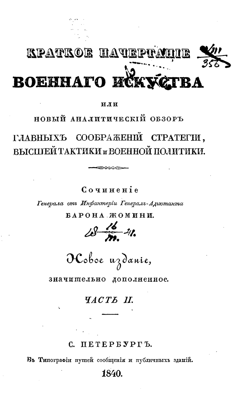 Краткое начертание военного искусства или новый аналитический обзор главных соображений стратегии, высшей тактики и военной политики. Часть II