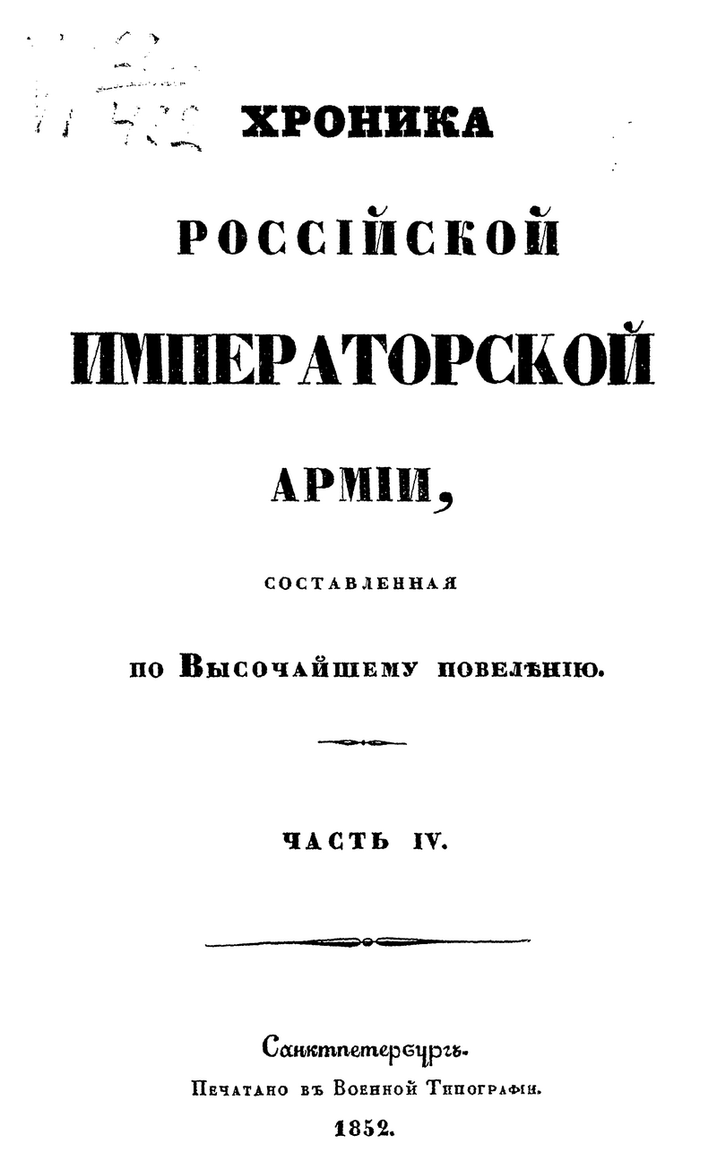Важнейший энциклопедический справочник, содержащий детальную историю всех российских войсковых частей. Составлен в правление Николая I.