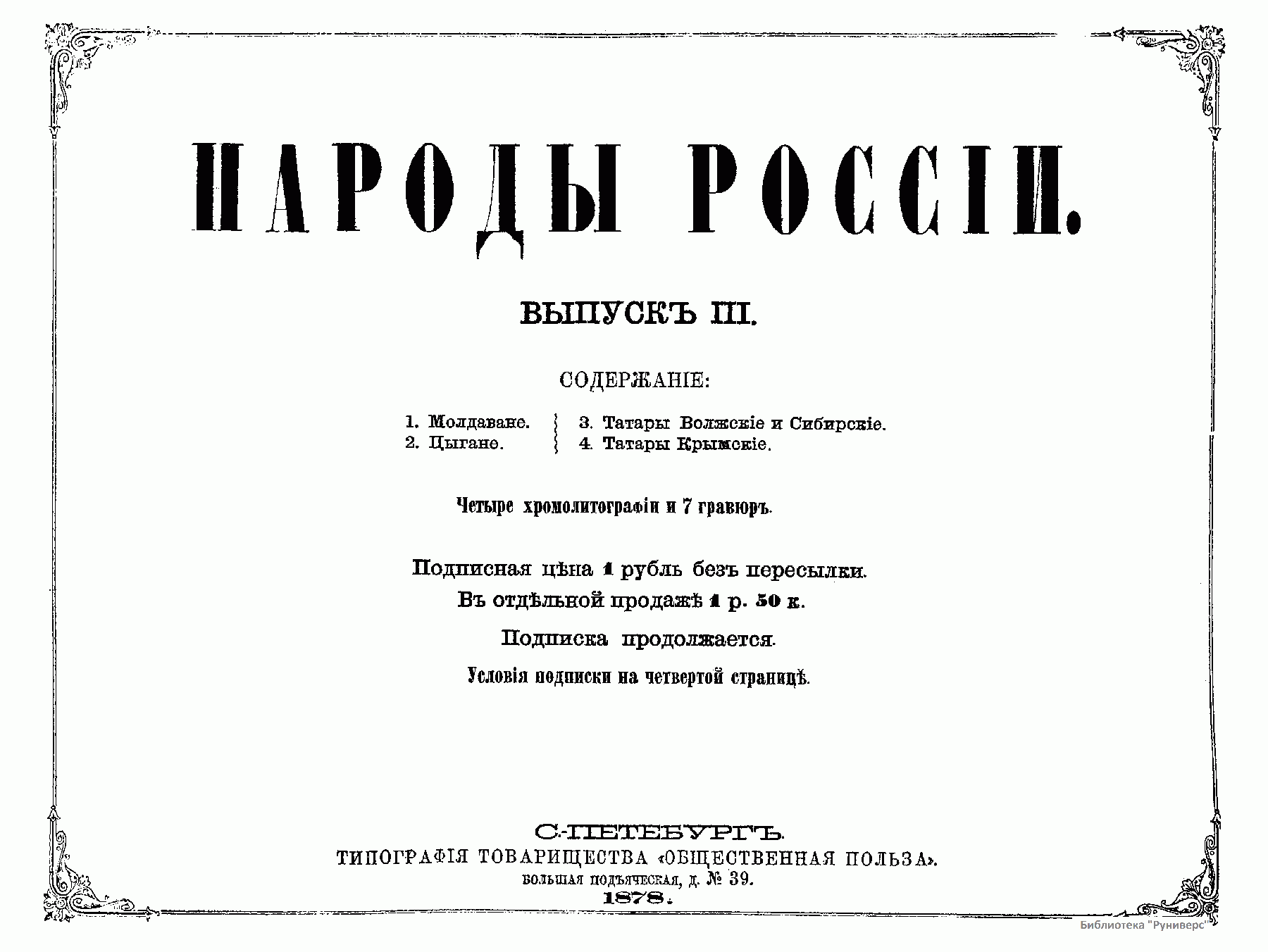 Масштабное научно-популярное исследование «Народы России», подготовленное известными российскими этнографами в период либеральных реформ Александра II, в эти годы пользовалось значительным читательским интересом. Это хорошо иллюстрированное обзорное издание, охватывающее необъятные географические и этнокультурные пространства, быт и нравы ногочисленных народов и народностей (выделено 45 основных народностей и народов), проживавших в Российской империи, и поныне представляется весьма познавательной книгой, далеко не потерявшей своей научно-практической значимости.