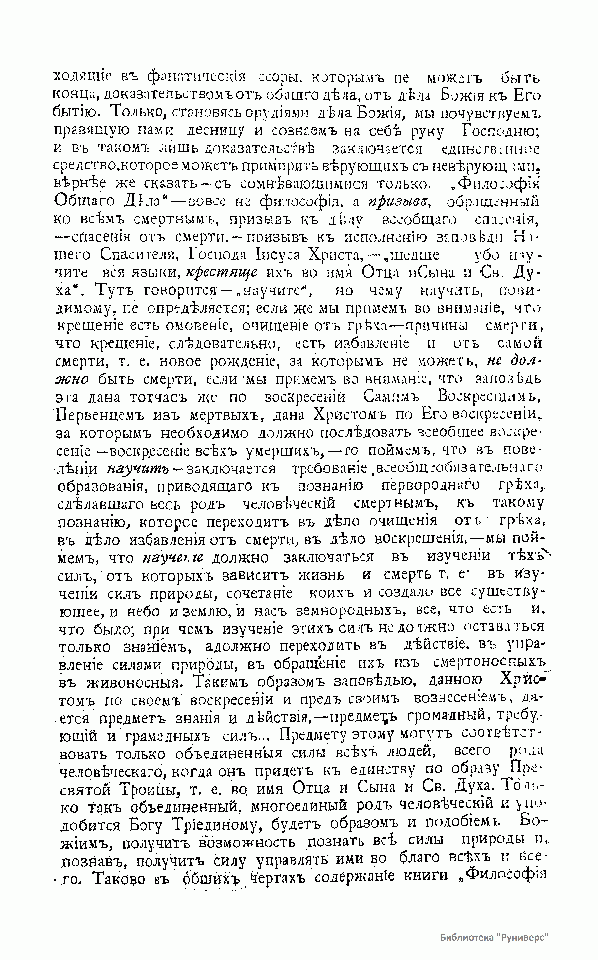 Н.Ф. Фёдоров и его книга "Философия общего дела" в противоположность учению Л.Н. Толстого "о непротивлении" и другим идеям нашего времени