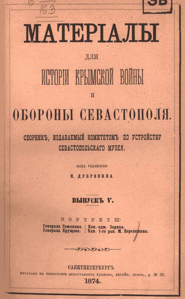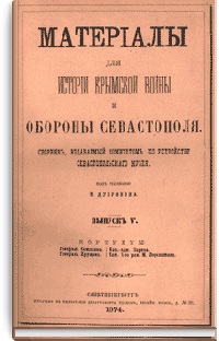 Материалы для истории Крымской войны и обороны Севастополя. Выпуск V