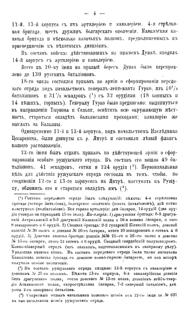 Он лично участвовал в сражении под Ловчей и в атаке 30-го и 31-го августа на Плевну, при чем был контужен в голову. При переходе отряда Скобелева через Балканы, 25 декабря 1877 г., Куропаткин был тяжело ранен и принужден оставить театр войны. Публикуемая работа дает детальное описание действий отрядов Скобелева.