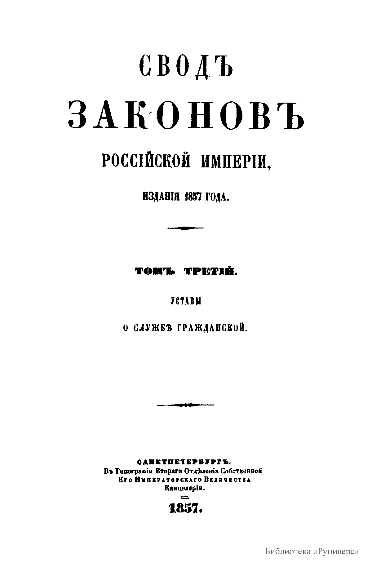 Свод законов Российской империи. Том третий. Уставы о службе гражданской