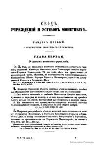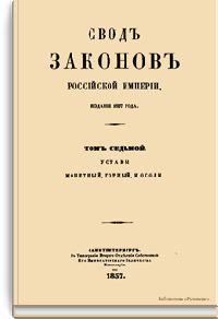 Сводъ законовъ Россiйской имперiи. Томъ седьмой. Уставы монетный, горный, и о соли