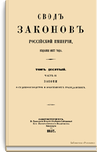 Свод законов Российской империи. Том десятый. Часть II. Законы о судопроизводстве и взысканиях гражданских