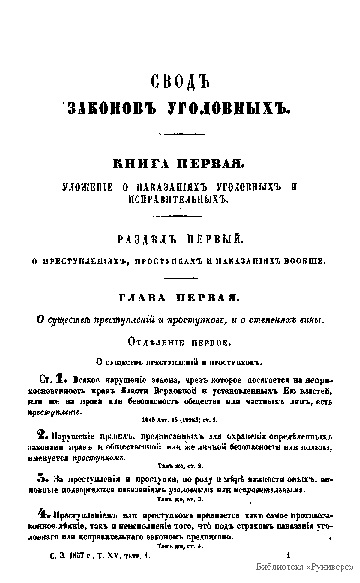 Сводъ законовъ Россiйской имперiи. Томъ пятнадцатый. Законы уголовные