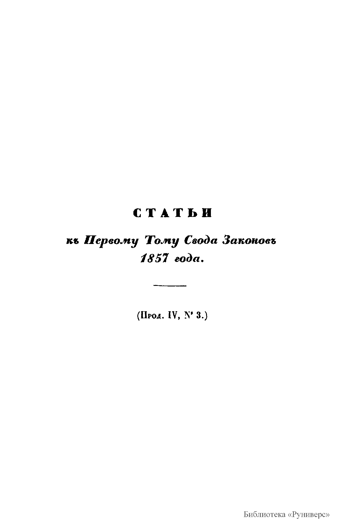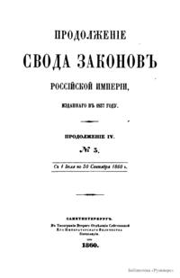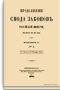 Продолженiе свода законовъ Россiйской имперiи, изданнаго въ 1857 году. Продолженiе №IV. №3. Съ 1 iюля по 31 сентября 1860 года