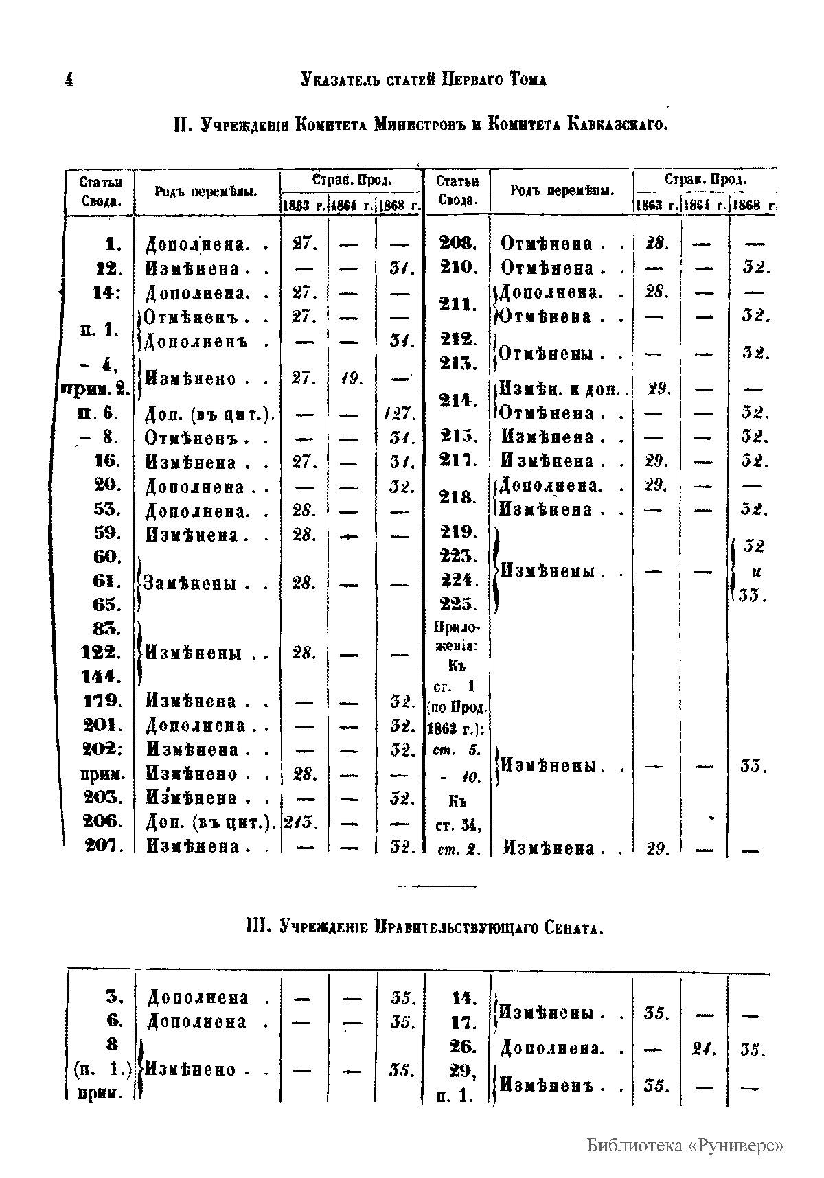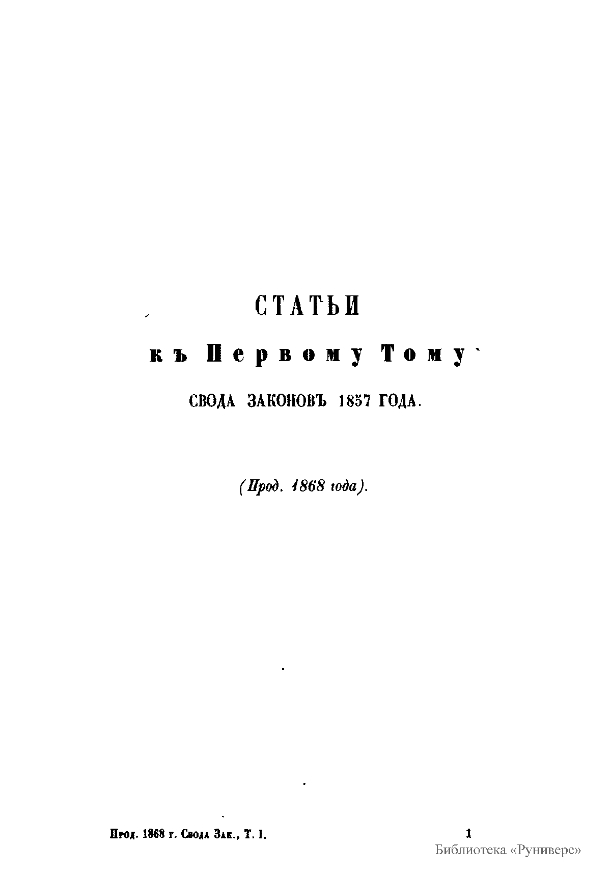 Продолжение свода законов Российской империи, изданного в 1857 году. С 1 января 1864 по 31 декабря 1867 года. Часть I. Статьи к I, II, III, IV и V томам свода