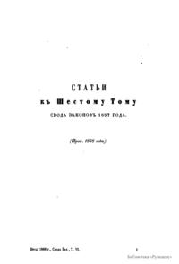 Продолженiе свода законовъ Россiйской имперiи, изданнаго въ 1857 году. Съ 1 января 1864 по 31 декабря 1867 года. Часть II. Статьи къ VI, VII, VIII и IX томамъ свода