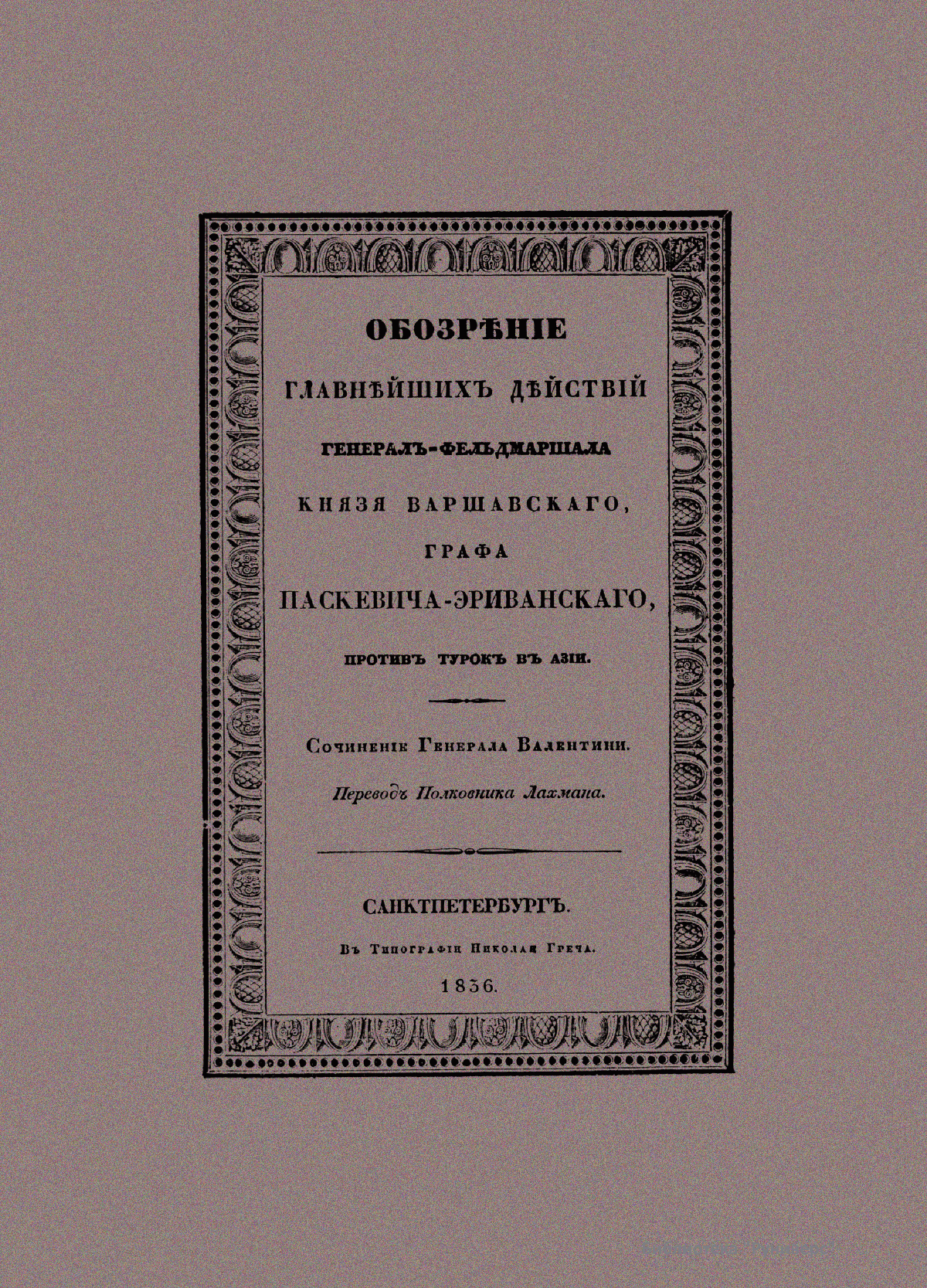 Обозрение главнейших действий генерал-фельдмаршала князя Варшавского, графа Паскевича-Эриванского, против турок в Азии