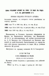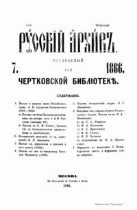 Русскiй архивъ. Историко-литературный сборникъ. 1866. Выпуски 7-12