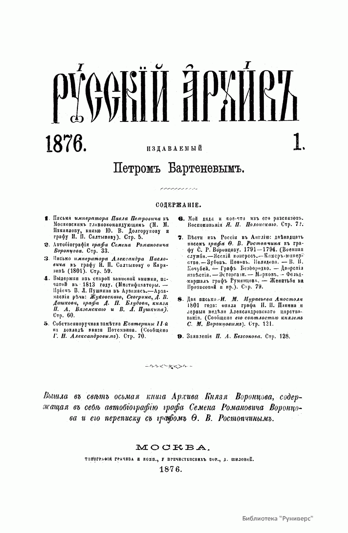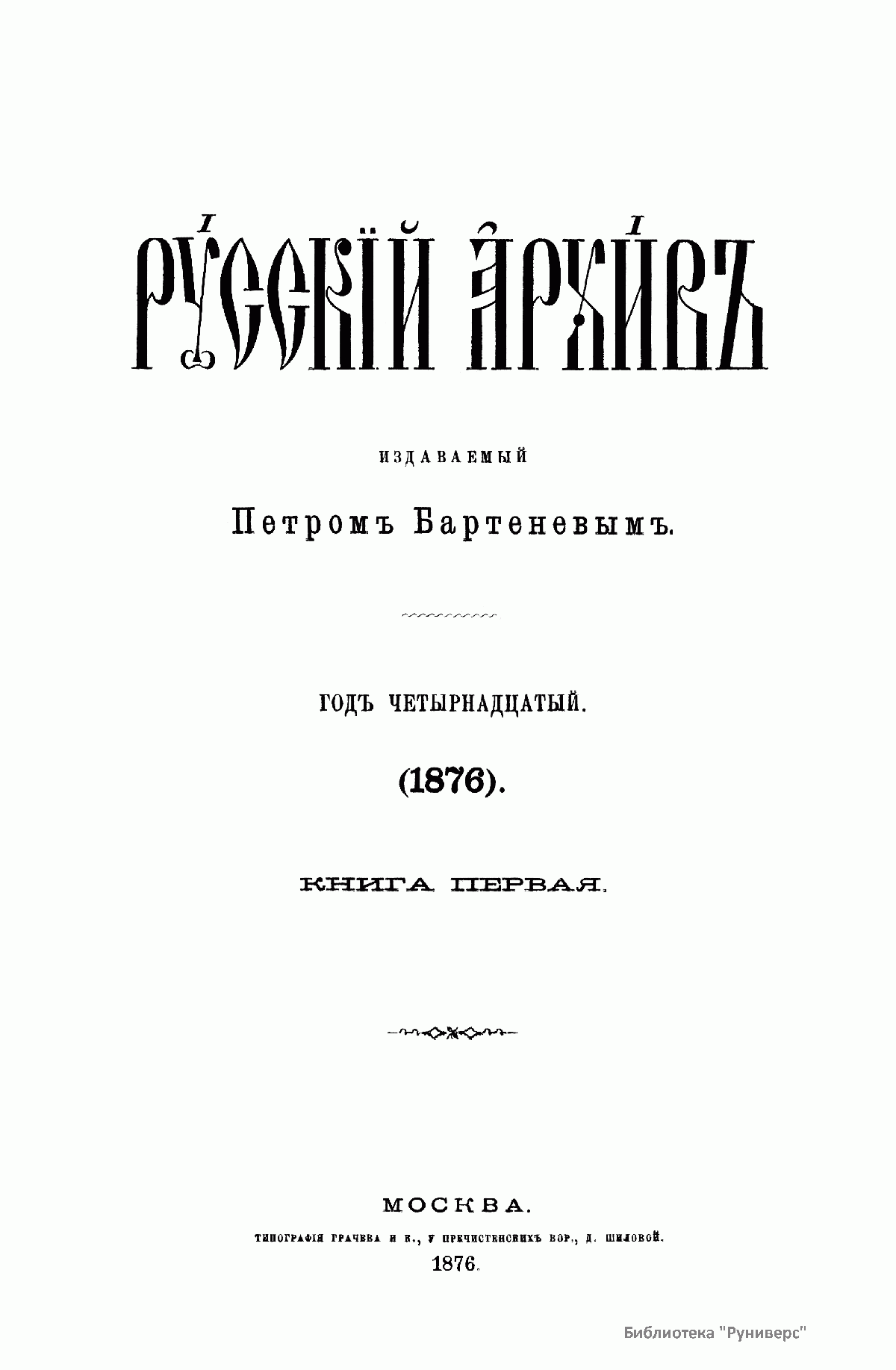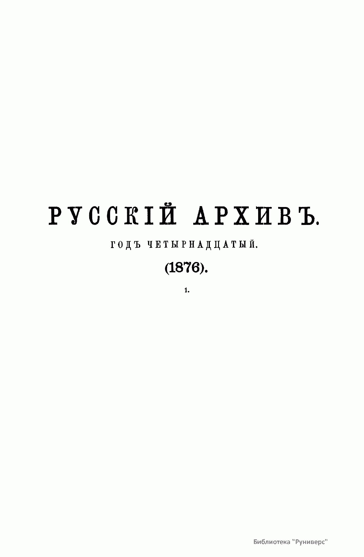 Русскiй архивъ. Историко-литературный сборникъ. 1876. Выпуски 1-4