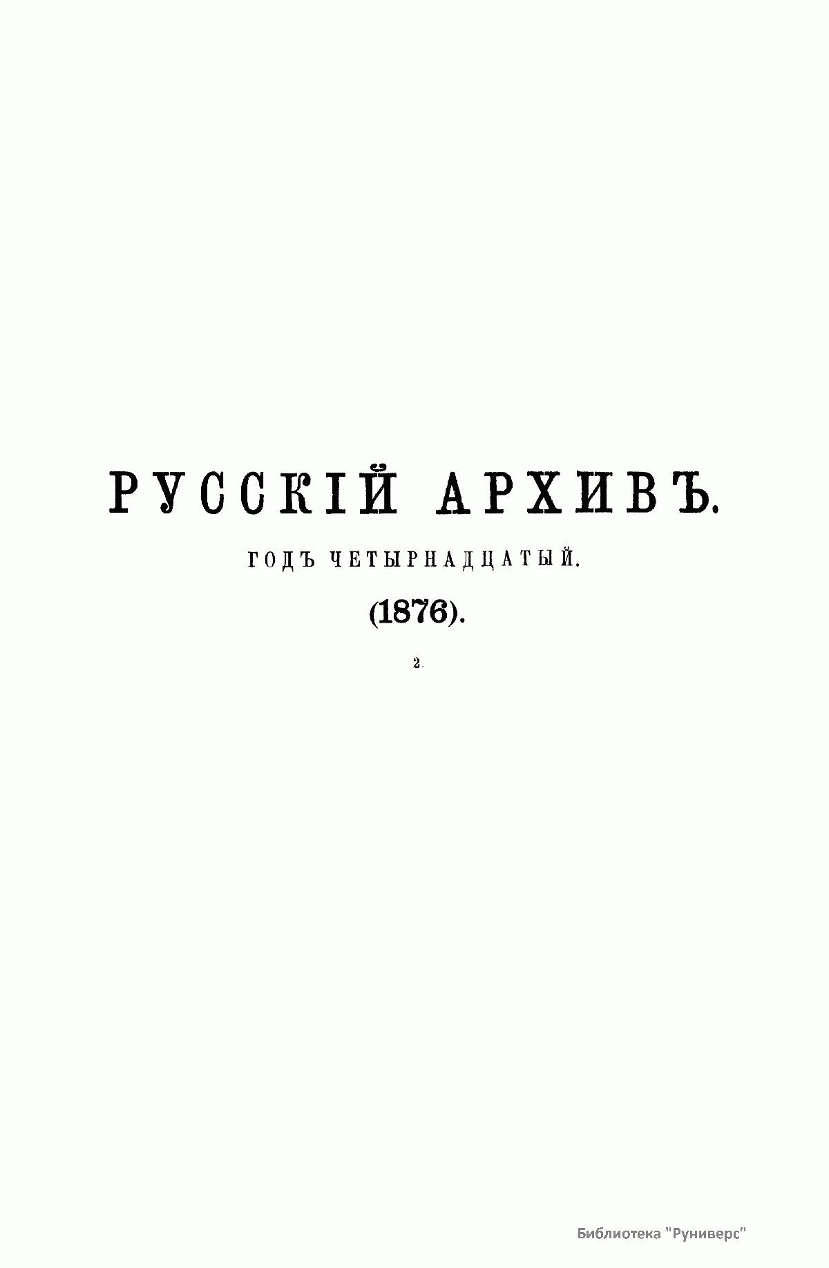 Русскiй архивъ. Историко-литературный сборникъ. 1876. Выпуски 5-8