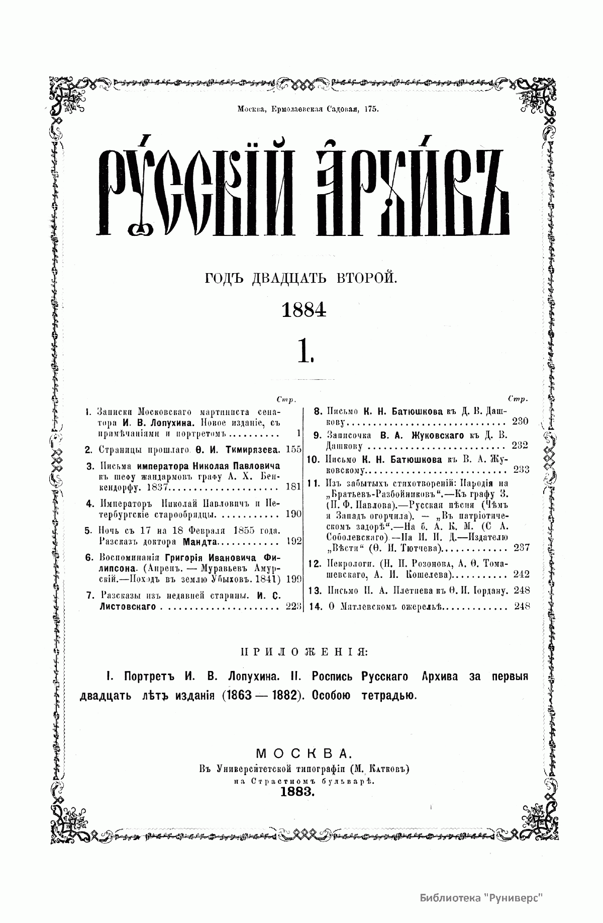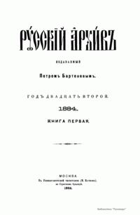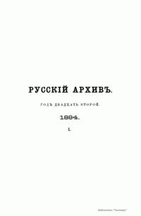 Русский архив. Историко-литературный сборник. 1884. Выпуски 1-2