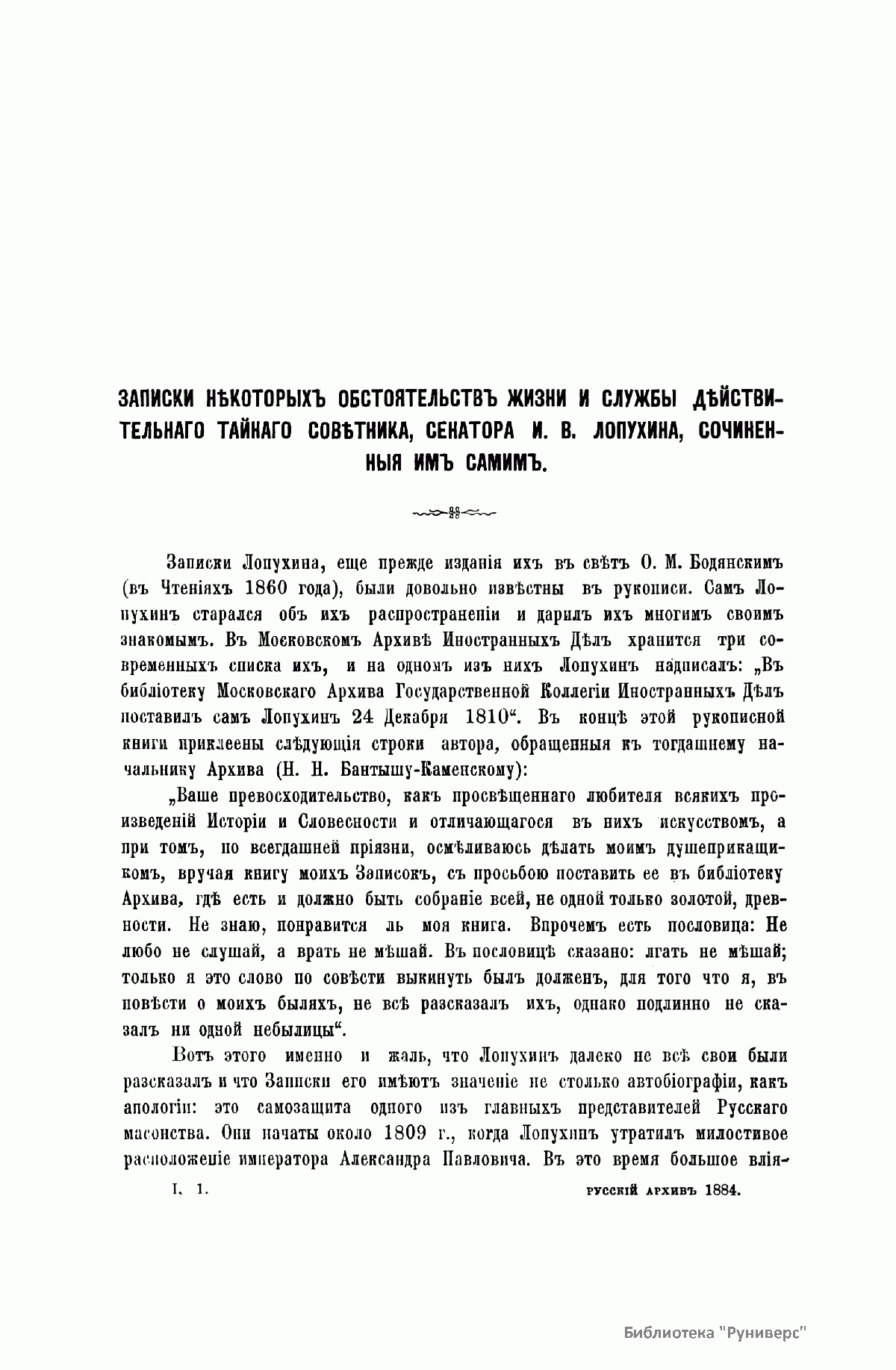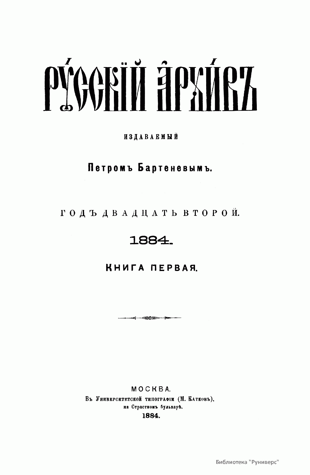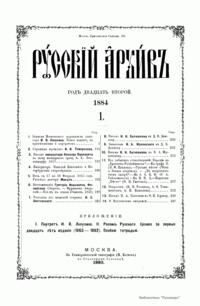 Русскiй архивъ. Историко-литературный сборникъ. 1884. Выпуски 1-2