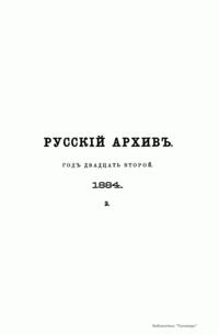 Русский архив. Историко-литературный сборник. 1884. Выпуски 3-4