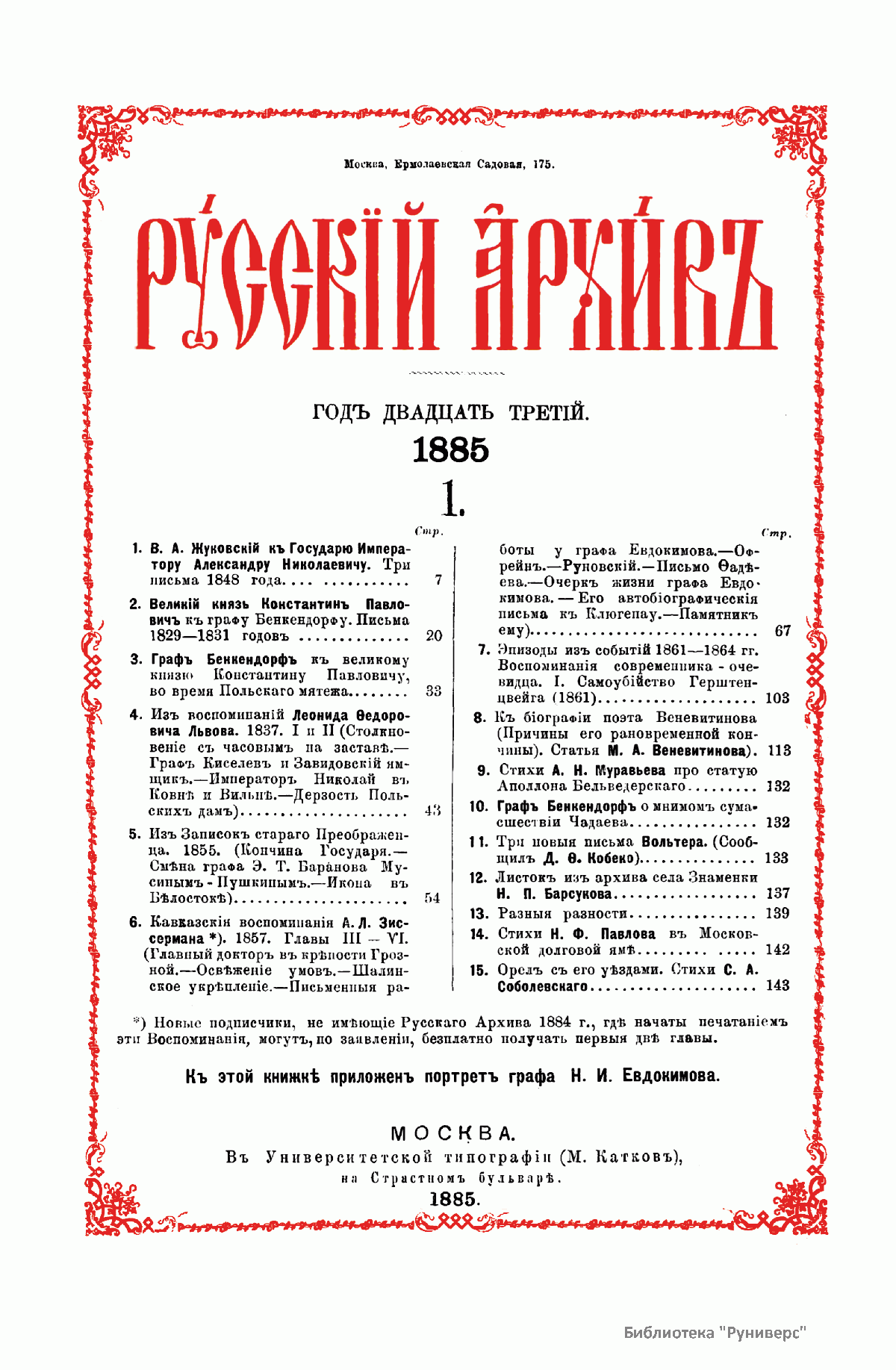 Русский архив. Историко-литературный сборник. 1885. Выпуски 1-4