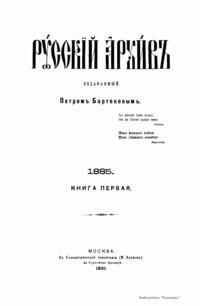 «Русский архив» — ежемесячный историко-литературный журнал, издававшийся в Москве с 1863 по 1917 год. Создателем и продолжительные годы редактором журнала был П. И. Бартенев – историк, археограф, библиограф. Этот журнал называли «живой картиной былого», поскольку он содержал преимущественно публикации неизданных мемуарных, эпистолярных, литературно-художественных и ведомственных документальных материалов, освещавших культурную и политическую историю России в XVIII и XIX вв. По числу опубликованных источников «Русский архив» стоит на первом месте среди русских исторических журналов.