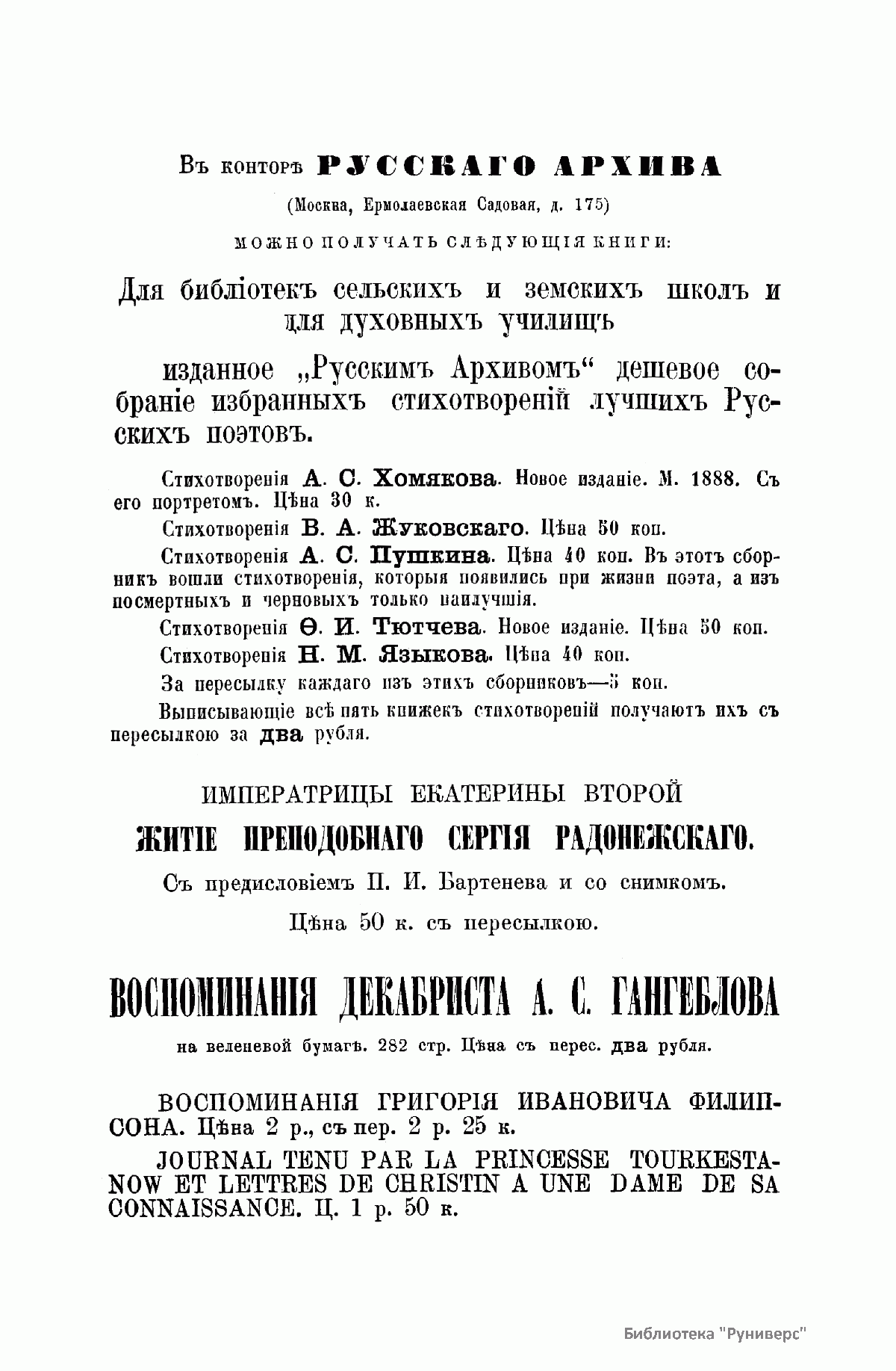 Русский архив. Историко-литературный сборник. 1890. Выпуски 9-12