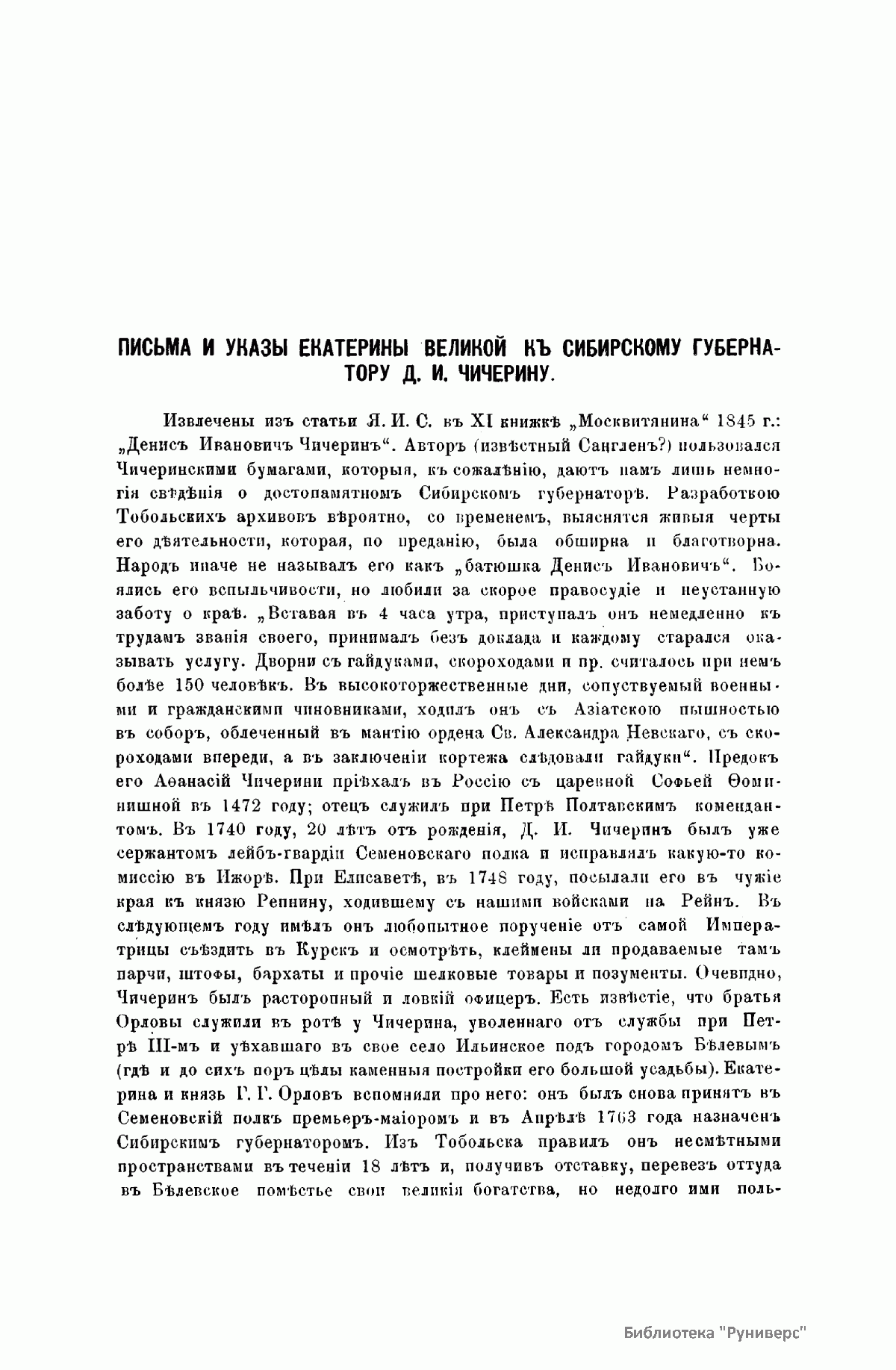 «Русский архив» — ежемесячный историко-литературный журнал, издававшийся в Москве с 1863 по 1917 год. Создателем и продолжительные годы редактором журнала был П. И. Бартенев – историк, археограф, библиограф. Этот журнал называли «живой картиной былого», поскольку он содержал преимущественно публикации неизданных мемуарных, эпистолярных, литературно-художественных и ведомственных документальных материалов, освещавших культурную и политическую историю России в XVIII и XIX вв. По числу опубликованных источников «Русский архив» стоит на первом месте среди русских исторических журналов.