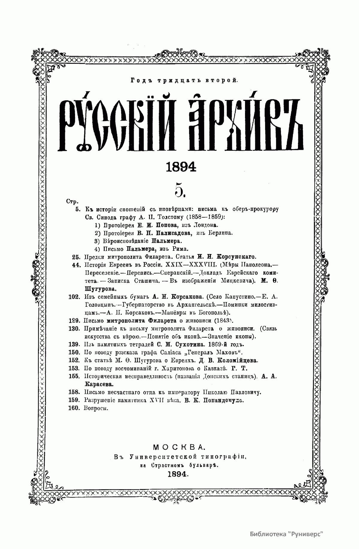 Русскiй архивъ. Историко-литературный сборникъ. 1894. Выпуски 5-8