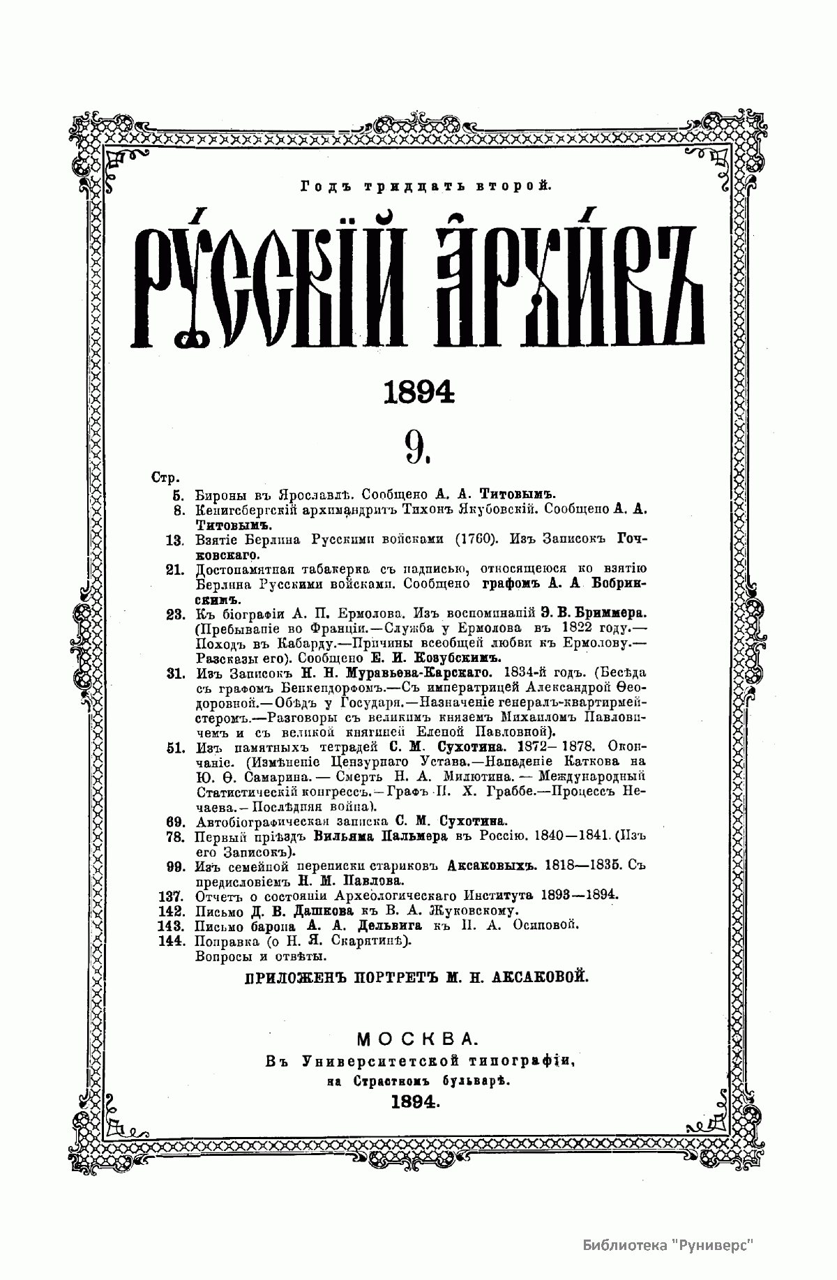 Русскiй архивъ. Историко-литературный сборникъ. 1894. Выпуски 9-12