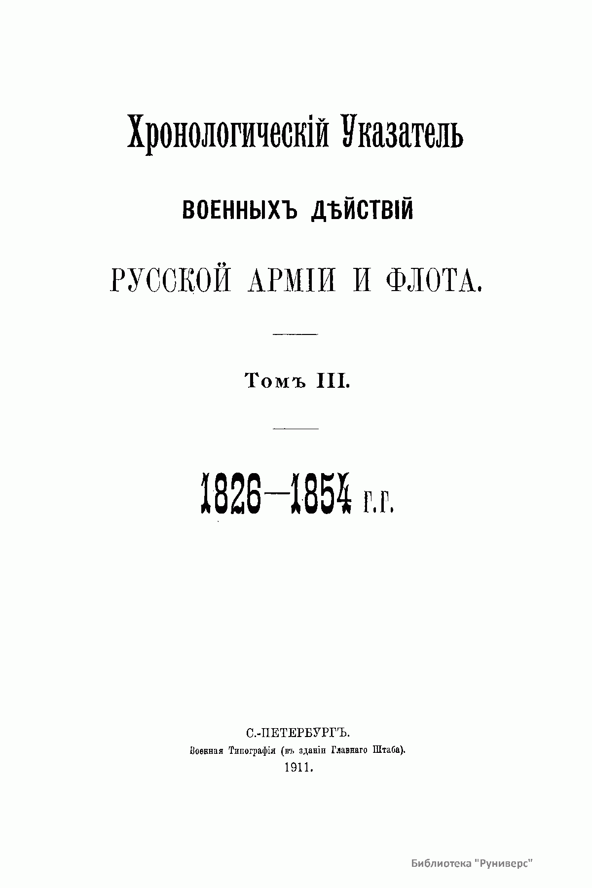Хронологическiй Указатель военныхъ дѣйствiй русской армiи и флота. Томъ III. 1826-1854 г.г.