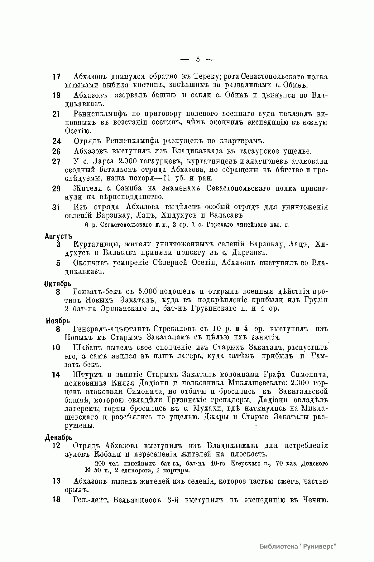 Подробный 5-томный справочник, изданный в 1908 – 1913 гг. коллективом авторов на основе фондов Военно-ученого архива Главного управления Генерального штаба (ныне Российский государственный военно-исторический архив), который содержит подробные сведения о боевых действиях русской армии и флота за период с 1695 г. (1-й Азовский поход) по 1905 г. (русско-японская война 1904 – 1905 гг.). В Справочнике приведены хронология событий, состав воинских соединений, включая наименования воинских подразделений (вплоть до отдельных рот и эскадронов), фамилии командиров, боевые потери и т.д.