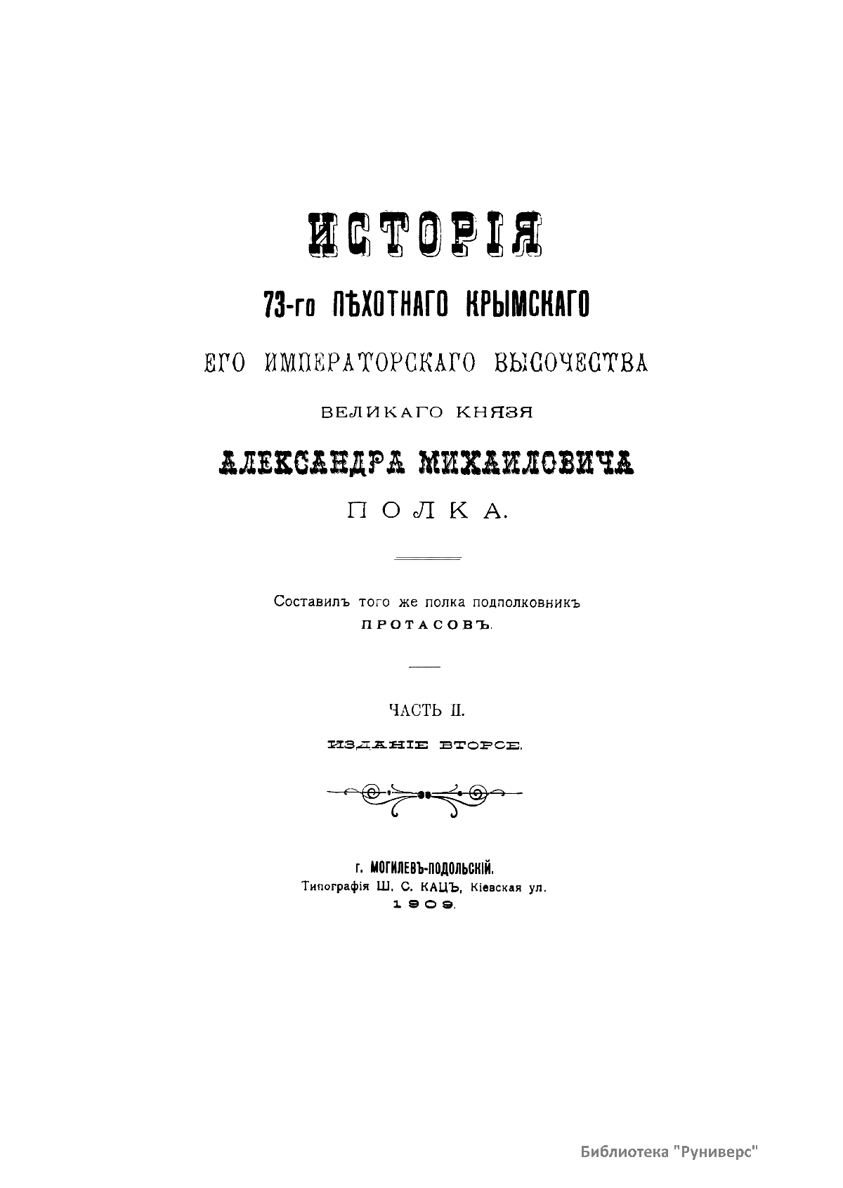 Исторiя 73-го пѣхотнаго крымскаго Его Императорскаго Высочества Великаго Князя Александра Михайловича полка. Часть II