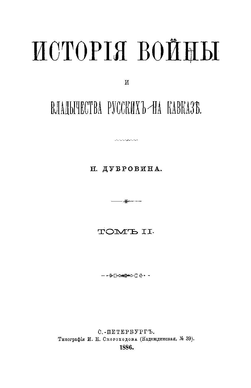 Сочинение Дубровина рисует картину завоевания русскими Кавказа, борьбу их с местным населением и времена наместничества. Подробно описаны не только военные события, но также быт и обычаи горных племен; жизнь их до принесения русских законов и после. Особенно тщательно выведены деяния наместников, даны многочисленные портреты персонажей эпохи покорения. События доведены до отставки Ермолова и назначения Паскевича.