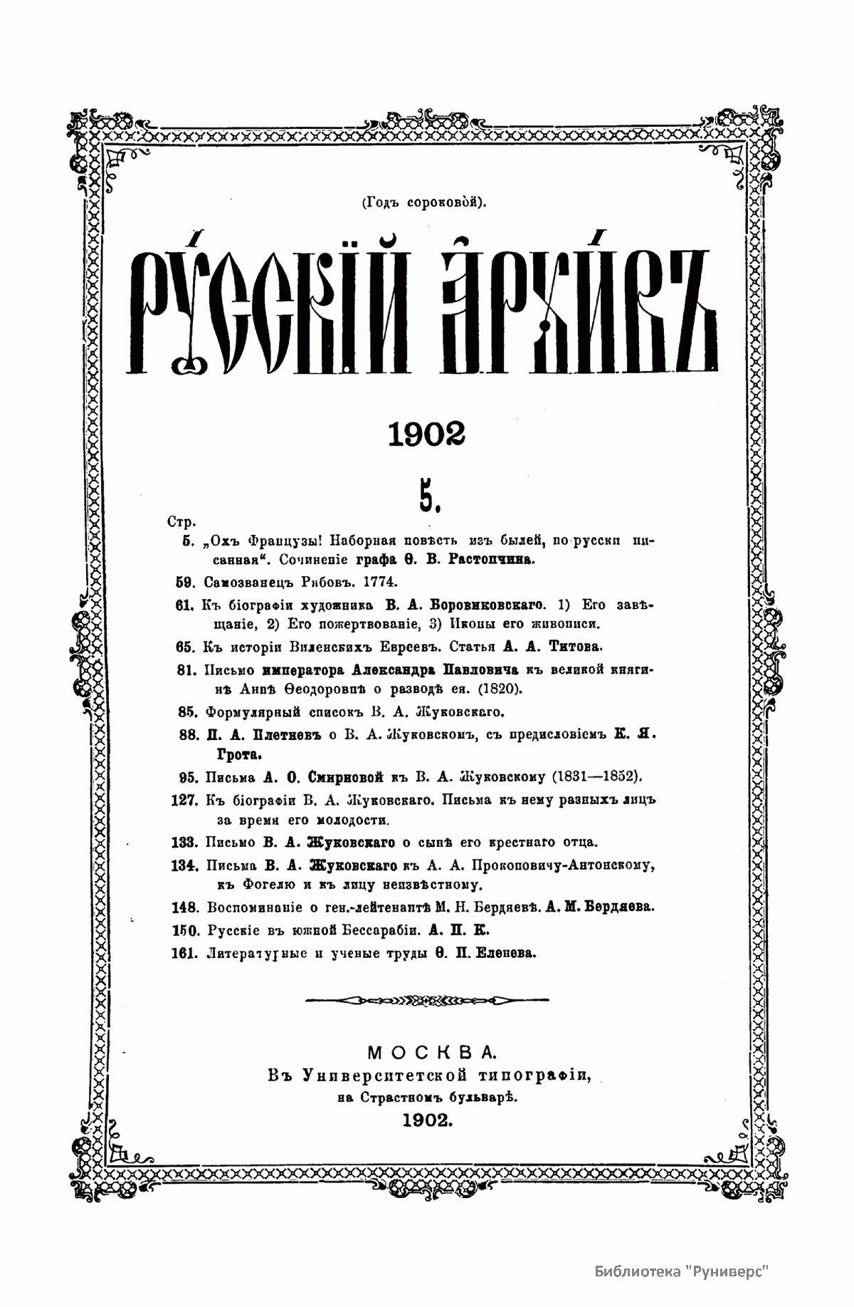 Русскiй архивъ. Историко-литературный сборникъ. 1902. Выпуски 5-8