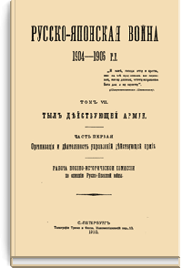 Русско-Японская война 1904-1905 гг. Томъ VII. Тылъ дѣйствующей армiи. Часть первая. Организацiя и дѣятельность управленiй дѣйствующей армiи