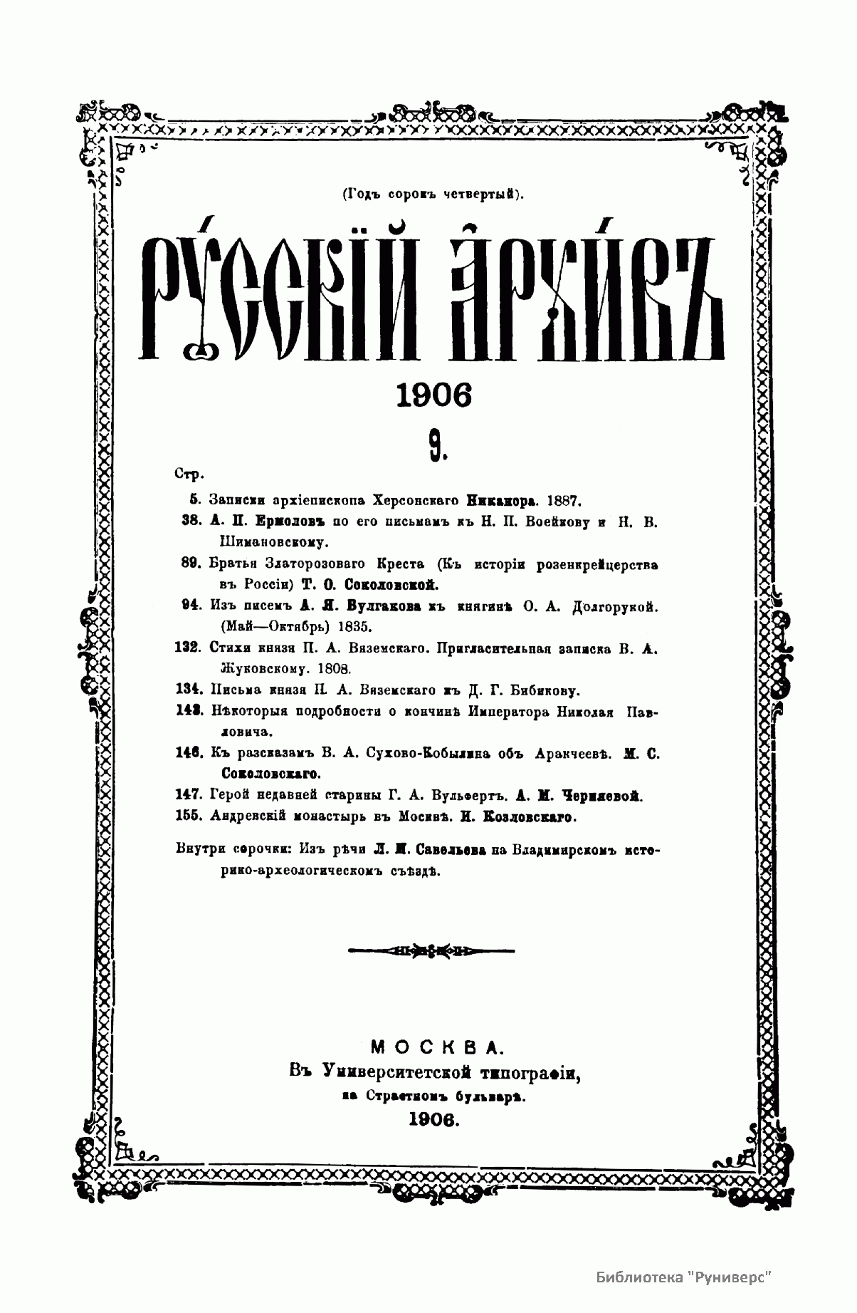 Русскiй архивъ. Историко-литературный сборникъ. 1906. Выпуски 9-12