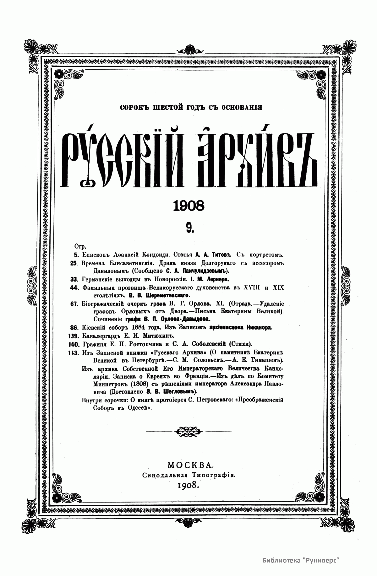 Русскiй архивъ. Историко-литературный сборникъ. 1908. Выпуски 9-12