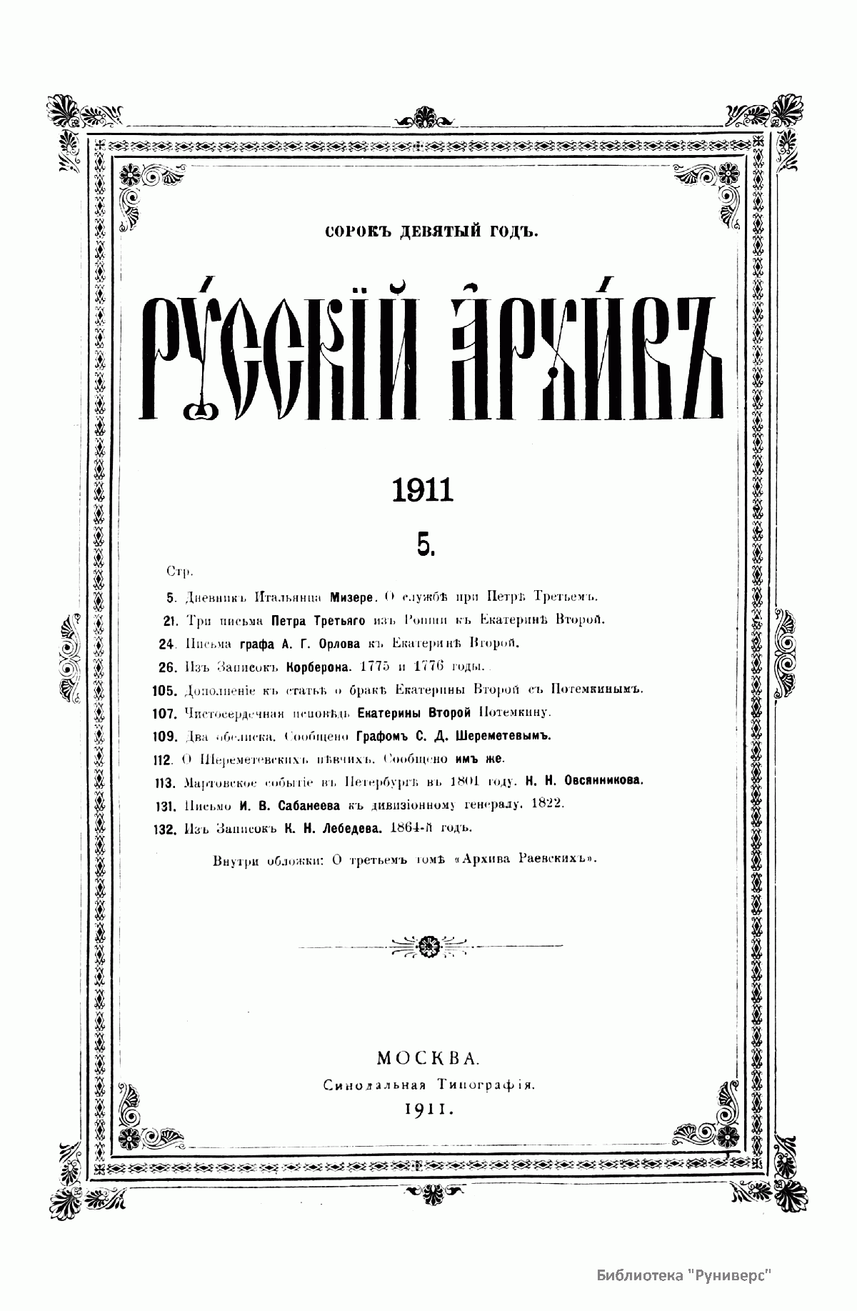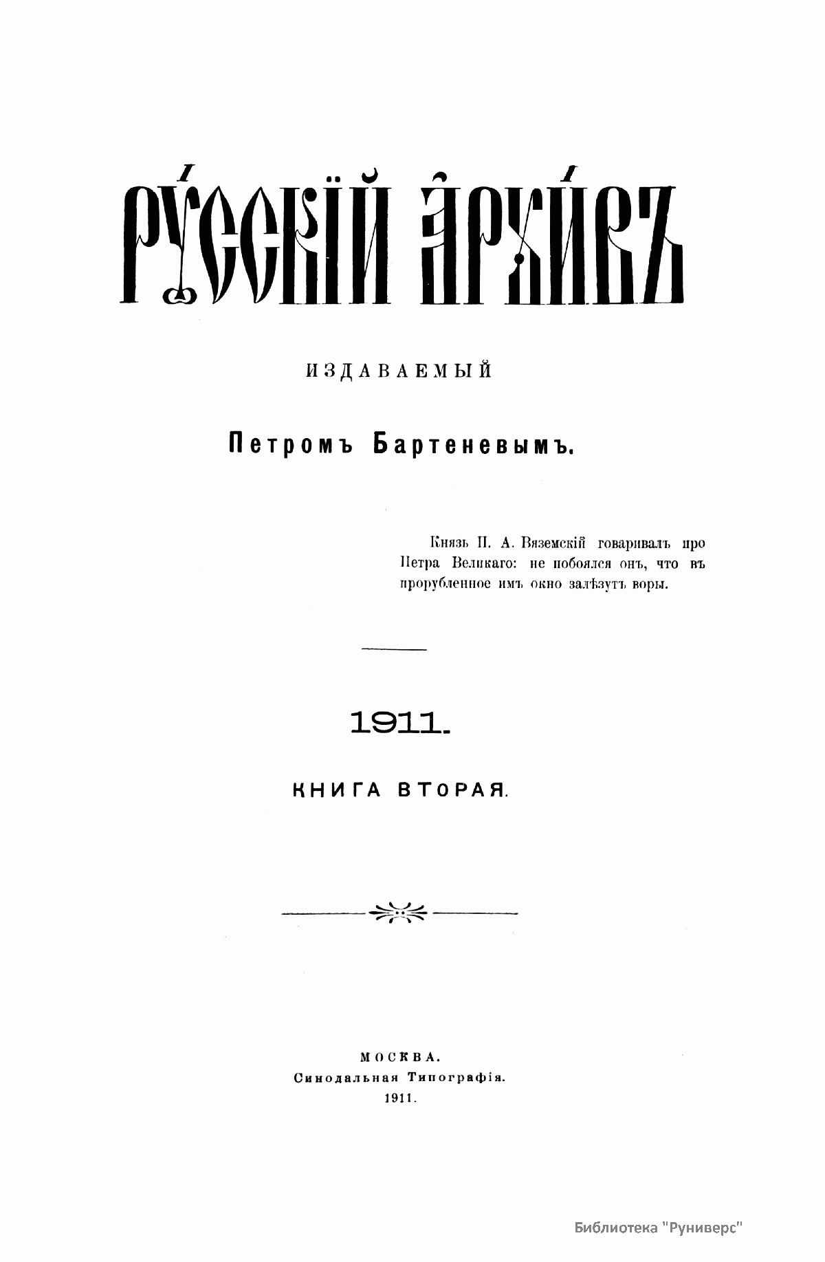 Русскiй архивъ. Историко-литературный сборникъ. 1911. Выпуски 5-8