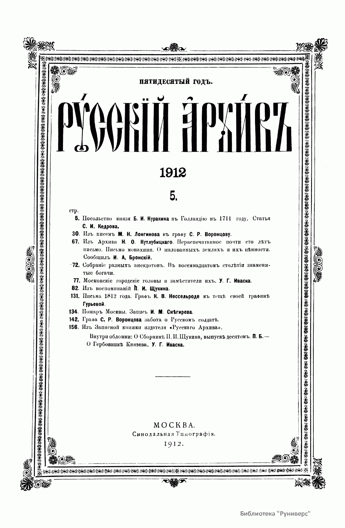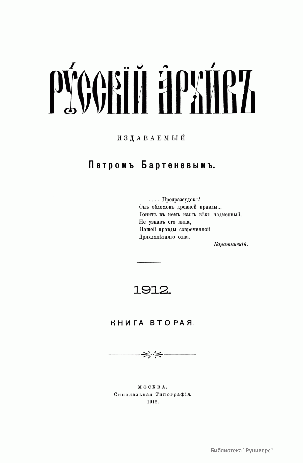 Русскiй архивъ. Историко-литературный сборникъ. 1912. Выпуски 5-8