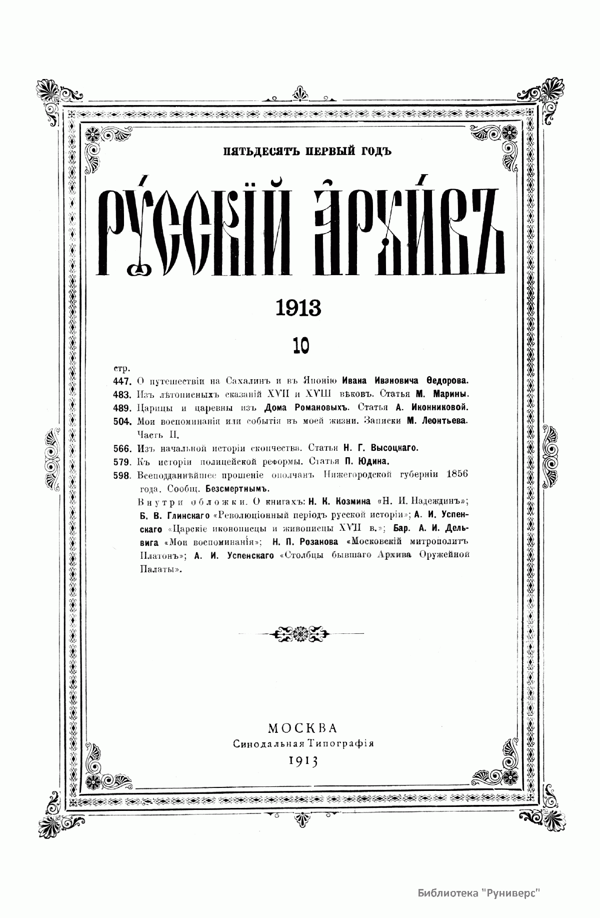 Русскiй архивъ. Историко-литературный сборникъ. 1913. Выпуски 10-12
